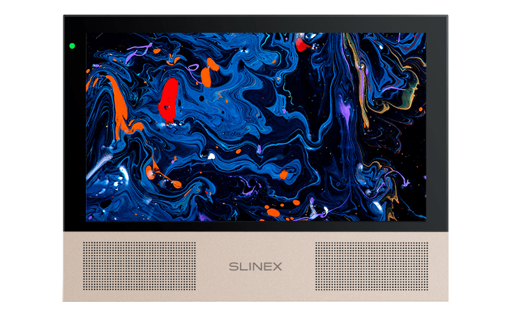 Цветной, настенный, 10" сенсорный IPS TFT LCD дисплей 16:9, разрешение экрана 1024х600. Подключение 2-х панелей и 2-х камер любого из стандартов: AHD/TVI/CVI/CVBS. Запись фото или видео на microSD карту до 64 ГБ. Функция «Картинка в картинке», дополнительное реле на видеодомофоне. Программная или аппаратная детекция движения. Интерком до 4-х домофонов: SL-10M(HD), Sonik 10, SL-07M(HD), SQ-07MT(HD), SM-07M(N/HD), Sonik 7, SQ-04M; SL-07IP(HD) и SL-10IPT(HD), а также SM-07N/SL-07N/SL-10N/Sonik 7 Cloud могут быть только основными при соединении в интеркоме. 2 мощных динамика с лицевой стороны. MP3 мелодии вызова, три временных режима уровня громкости, режим «Не беспокоить», отображение часов в режиме ожидания, фоторамка. Дополнительная сменная лицевая панели в комплекте. Потребляемая мощность – до 10 Вт, питание: ~100-240 В или +13,5 В. Размер: 248х177х21 мм. Цветовые решения: белый+серебро + сменная панель «Золотой песок» / черный+розовое золото + сменная панель «Марсала».