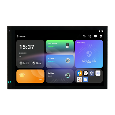 OS Android 14, 1280x800 разрешение, ёмкостной сенсорный экран; тревожные входы / выходы 8/1; USB, RS485. LAN, Wi-Fi 2.4 ГГц; ZigBee, Bluetooth; Micro SD до 512Гб; Питание: DC 12В/PoE, выход питания: DC 12В; Габаритные размеры: 246.5 мм × 156.1 мм × 33.0 мм; Установка - на стену."