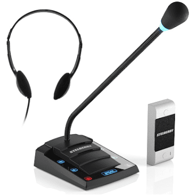 Дуплексное переговорное устройство "клиент-кассир" с возможностью переключения в режим «Симплекс», возможностью подключения наушников (в комплекте) и выходом для записи переговоров. В комплекте идёт пульт кассира, панель абонента, наушники и блок питания.