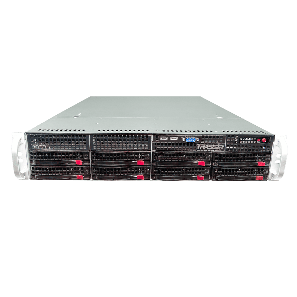 TRASSIR NVR-7800R/128-S — Сетевой видеорегистратор для IP-видеокамер под управлением TRASSIR OS (Linux). Позволяет организовать АРМ оператора с возможностью подключения до 6-ти мониторов (6 x DisplayPort). Регистрация, воспроизведение до 128 IP-видеокамер любого поддерживаемого производителя (лицензии для подключения IP-видеокамер приобретаются отдельно), при наличии DualStream. Установка до 8-ми HDD 3.5". Крепление в 19" стойку, 2U. Габариты устройства (ШхГхВ) - 437х647х89 мм.