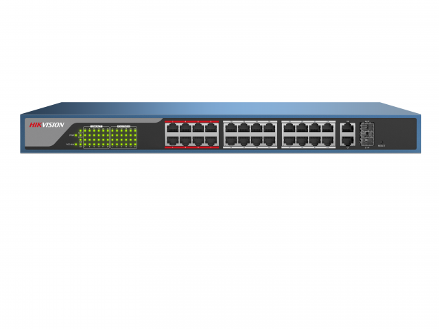 24 RJ45 100M PoE с грозозащитой 6кВ, 1-8 порты с высоким приоритетом; 2 Uplink комбо-порта 1000М; бюджет PoE 370Вт; поддержка режима передачи до 250м,10Мб/с, CAT5e;таблица MAC адресов на 4000 записей; пропускная способность 8.8Гб/с; стандарты PoE: IEEE802.3af, IEEE802.3at; 100~240 VAC, мас. 6.5 A; -10 °C...+55°C.