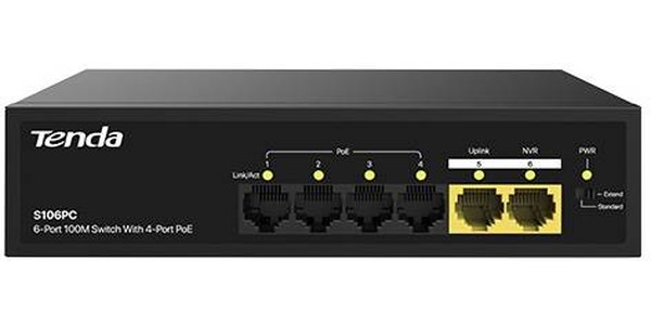 Доступный коммутатор Tenda S106PC оснащён шестью портами 10/100 Мбит/с. Все порты поддерживают функцию Auto MDI/MDIX, которая позволяет не беспокоиться о типе кабеля, так как технология самостоятельно определит его и выполнит необходимые настройки. PoE питание до 55Вт.