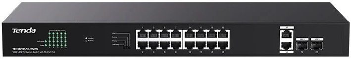 TEG1120P-16-250W Tenda TEG1120P-16-250W - это устройство с 18 портами Ethernet и 2 портами SFP. Порты Ethernet поддерживают питание PoE и могут обеспечить стабильную подачу питания и передачу данных для устройств, таких как HD PoE IP камеры и точки доступа. Максимальная мощность, которую может обеспечить коммутатор, составляет 230 Вт.