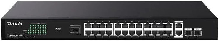 TEG1128P-24-410W TEG1128P-24-410W - это управляемый коммутатор Ethernet PoE от Tenda. Коммутатор предоставляет 24 гигабитных порта PoE, 2 гигабитных порта RJ45 и 2 порта SFP. Он поддерживает стандарт IEEE 802.3af/at и автоматически обнаруживает PDs и подает питание. Максимальная выходная мощность одного порта составляет 30 Вт, а общая мощность коммутатора - 370 Вт. Он поддерживает монтаж в стойку, настройку одним переключателем, Plug and Play и простое сетевое подключение.