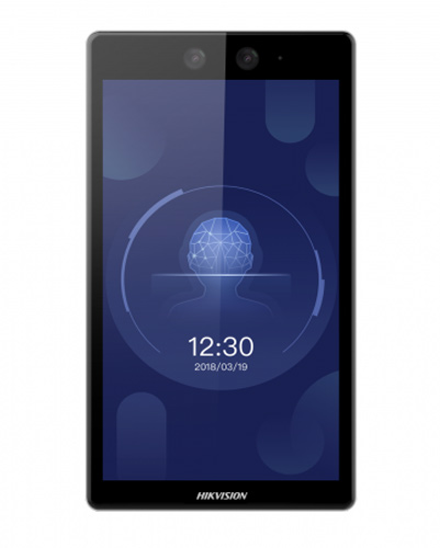Интерфейсы: TCP/IP; 1 RS-485; 1 Wiegand 26/34; 1 USB; 1 тревожный выход: 2 тревожный вход; 1 замок; 1 магнитный контакт; 1 кнопка выхода; 1 темпер; Под экраном встроенный считыватель E-Marin; Поддержка двухсторонного видео-интеркома с домофоном и пультом консьержа Hikvision; RTSP, H.264; Режим аудентификации лиц: 1:1 или 1:N; DC12В, 3А; -10 °C...+50°C; размер 185.8×103.36×20.7мм; пластик, металл. IP65,