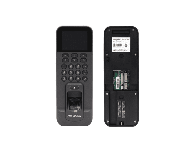 2.4" цветной TFT LCD экран с разрешением 320×240; хранилище: 3000 карт, 100000 событий, 3000 отпечатков; локальный интерфейс: русский язык; механическая клавиатура; uplink интерфейсы: TCP/IP, WIFI; интерфейсы считывателей: 1 вход Wiegand, 1 выход Wiegand; Поддержка ISUP 5.0 и ISAPI; тревожные вход/выход 3/2; 1 USB; DC12В; 12Вт; -10 °C...+55°C; IP42; размер 205×76.5×37мм; пластик.