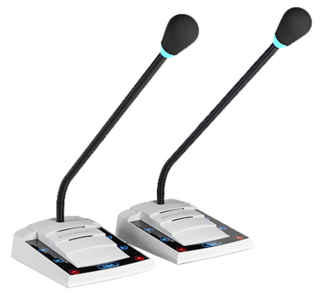 Белое цифровое переговорное устройство офисной связи "директор-секретарь" с выходом для записи переговоров. В комплекте идёт пульт директора, пульт секретаря и блоки питания к ним.