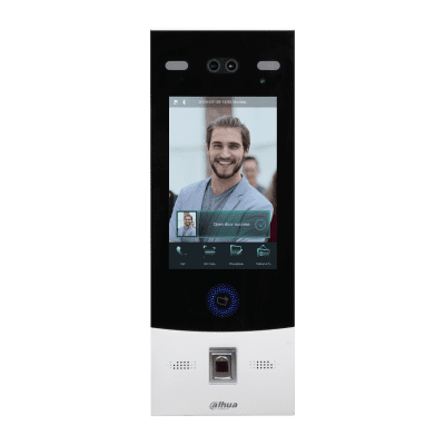 Вызывная панель с разрешением камеры 2мп и CMOS сенсором, емкостный сенсорный IPS экран с диагональю 8 дюймов и разрешением 800*1280, алюминевый корпус,открытие по отпечатку пальца, карте, сканированию лица паролю или Bluetooth ключу. Количество лиц в памяти 20000, время распознавания лица ≤0.2 сек, уровень защиты IP66, IK07. Питание: DC 12V.