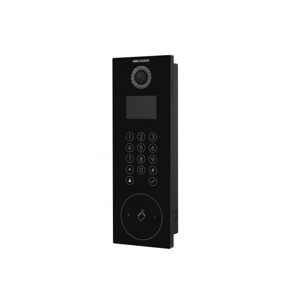 3.5″ цветной LCD-экран с разрешением 480 x 320; 2Мп HD камера с ИК до 1м; H.264, True WDR; Угол обзора 120°; Веб-интерфейс; сенсорная клавиатура; считыватель карт; микрофон; динамик; управление 2 дверей; 2 RS-485; 1 Wiegand; Количество карт до 50000; Веб-интерфейс; Протокол ISAPI, RTSP, SIP, SNMP v1, v2, v3; IP65, Врезная установка; Рабочая температура от -40 до +55 °C; Размер: 418×145×61мм; 1.05 кг; Пластик;